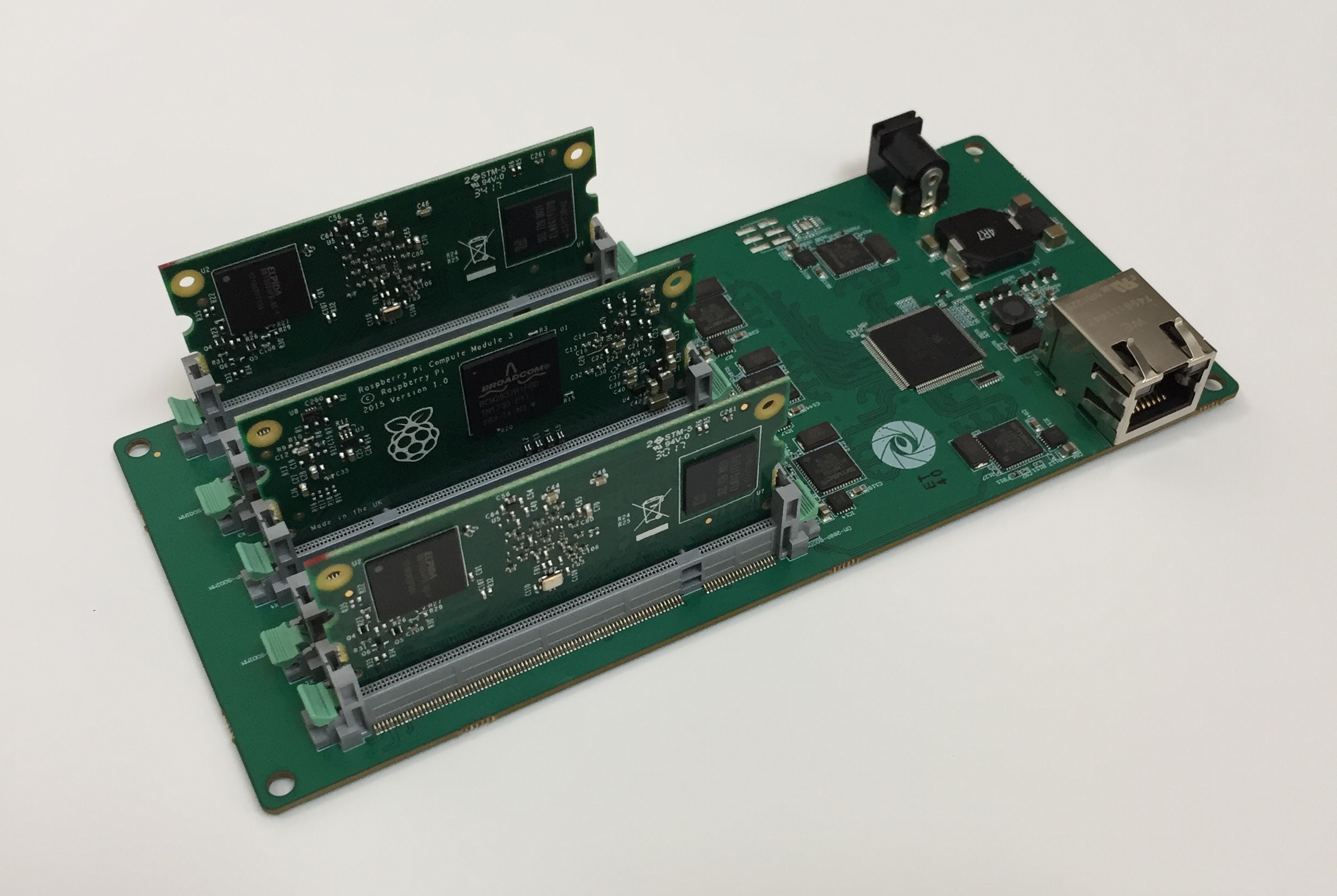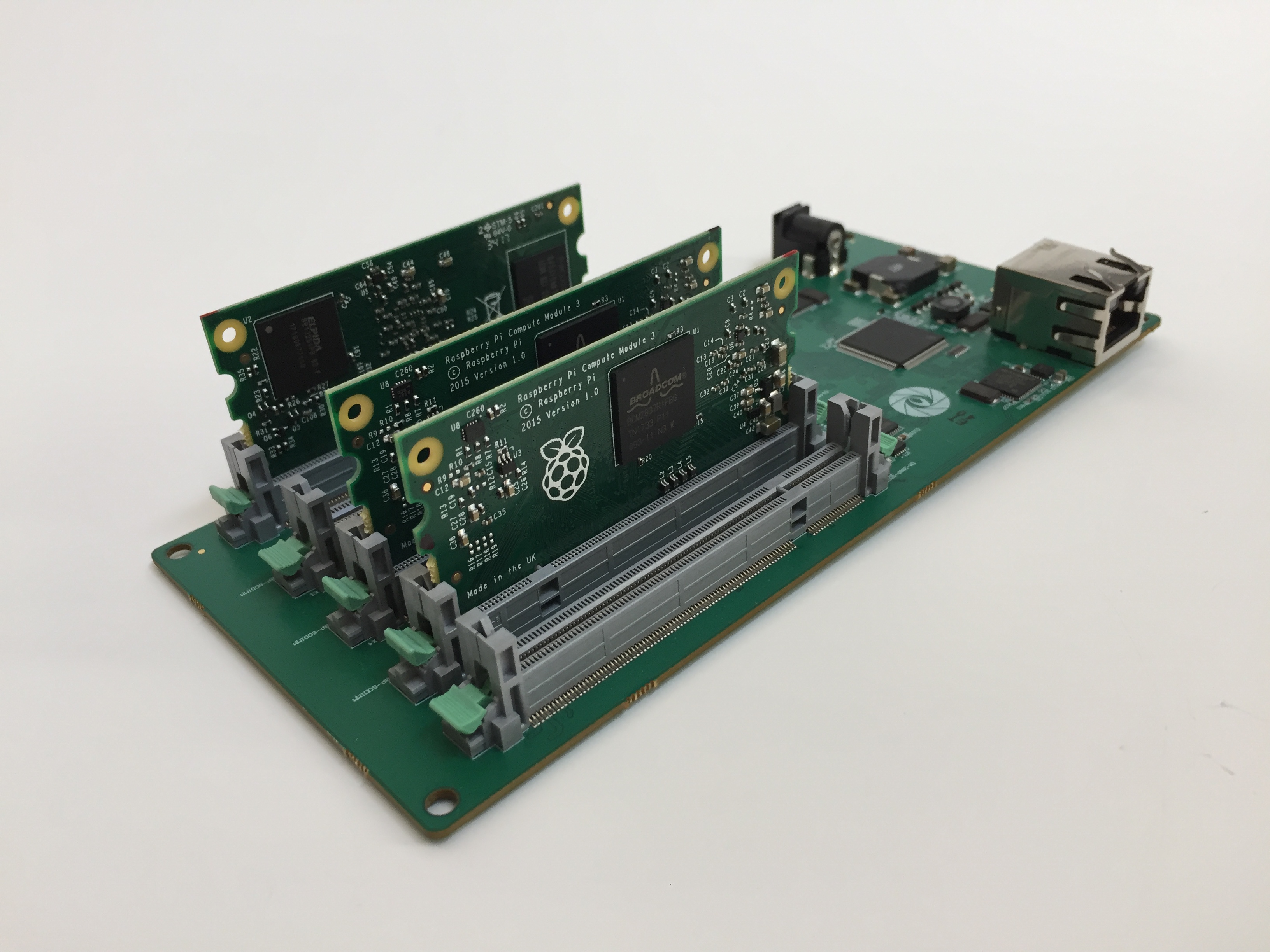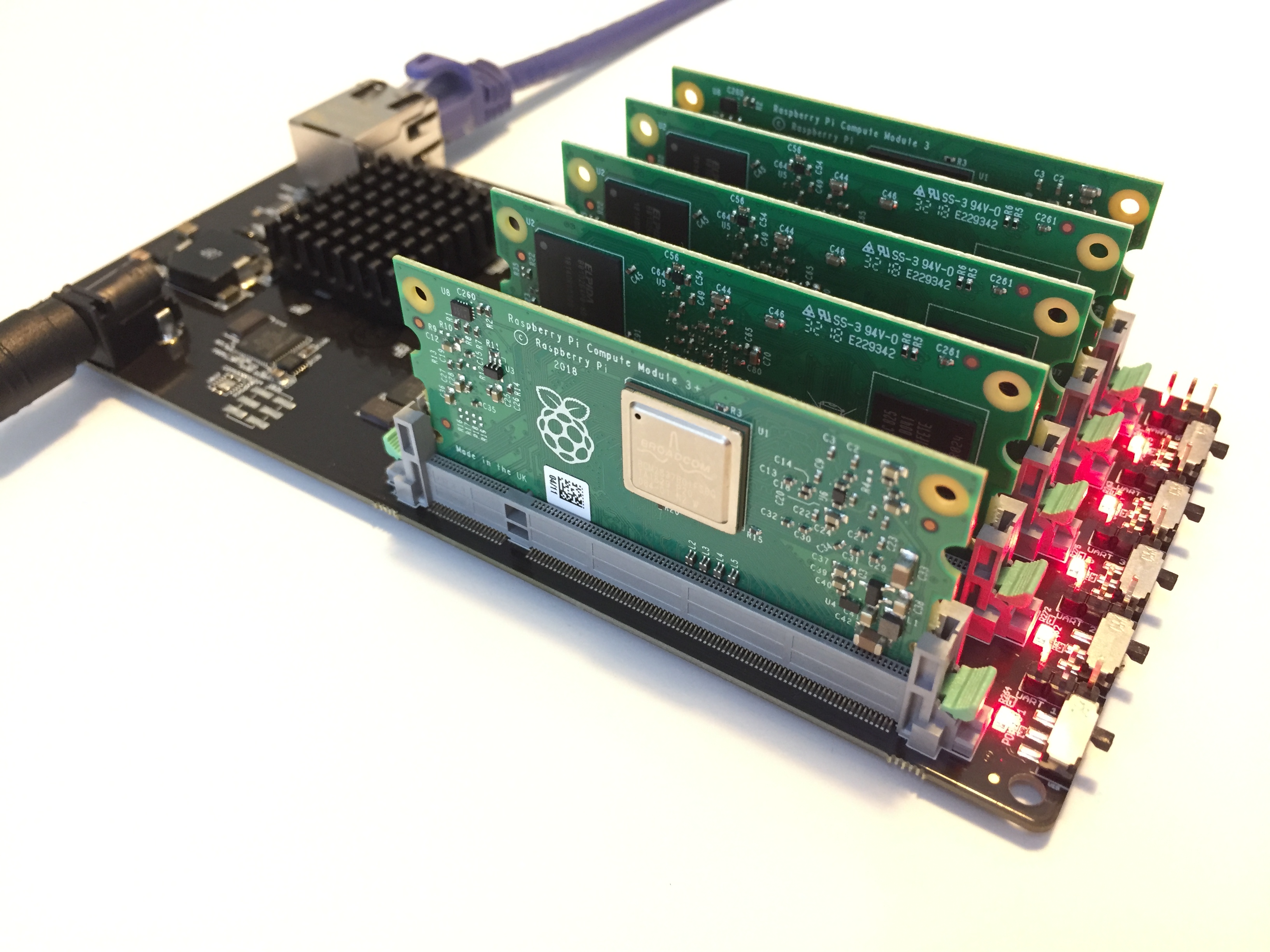 Our custom designed 5-Node Raspberry Pi 3 CoM Carrier Board is a robust solution that can be used in a wide range of scenarios to deliver low-power compute capacity to places that were not previously accessible. The Raspberry Pi System on Modules offer great software compatibility, low power and thermal footprints, and tiny physical dimensions.